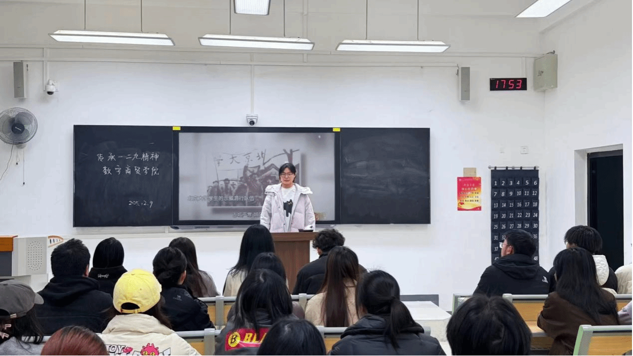 九十载前,北平青年以热血为笔、生命为墨,镌刻下“一二·九”运动的赤诚爱国华章;九十载后,数字商贸学院青年学子以讲述为桥、传承为责,用新时代的表达致敬峥嵘岁月,让一二·九精神在青春新征程中赓续荣光。(审稿人:贾书媛)