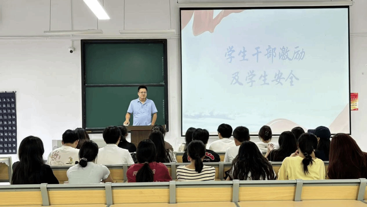 程天龙以“学生干部激励及学生安全”主题,从学生干部的职责及意义出发,强调学生干部参与学院学生工作的桥梁与纽带作用,鼓励大家勇于担当,积极作为,在奉献中实现自我成长。