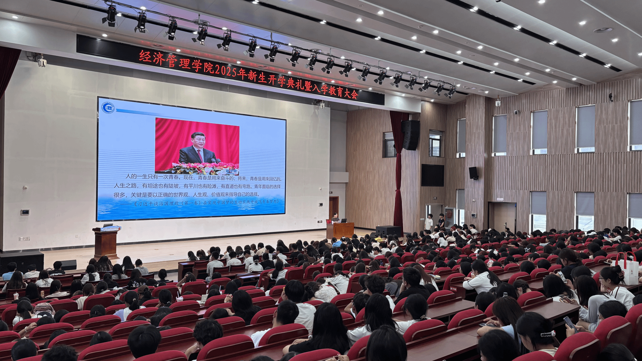 9月28日,经济管理学院在问渠厅举办2025级新生理想信念教育专题讲座,由学院党总支书记贾书媛主讲,全体新生参加活动。