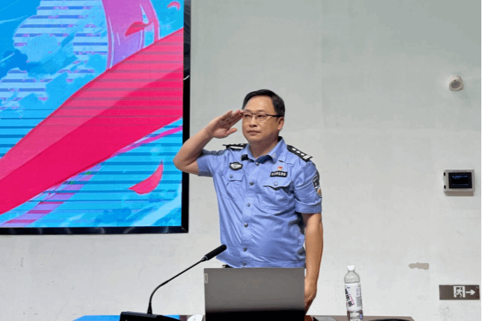 随后武汉市江夏区大桥派出所副所长胡曲强围绕警情统计与分析、学校周边社会治理情况、防诈小知识、自身安全防范四个板块,进行安全教育,强化新生安全防范意识。